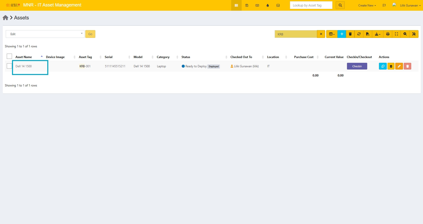 • Silahkan pilih/cari asset yang akan digenerate dan klik asset name.