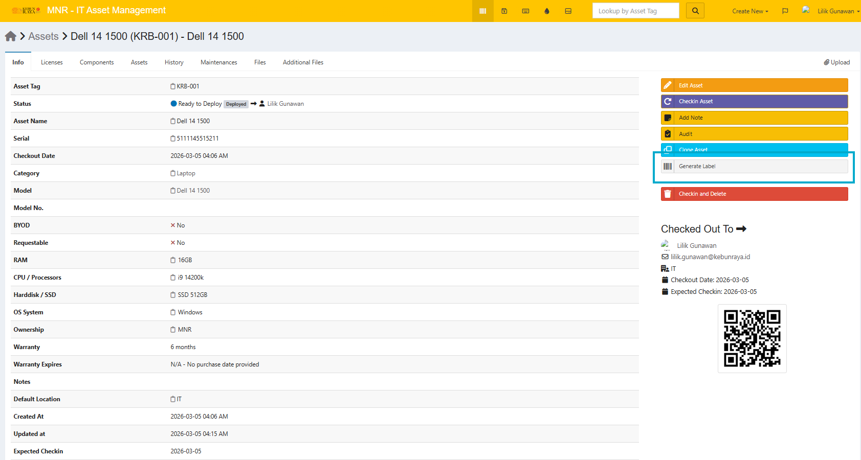 • Due for Checkin : Aset yang seharusnya sudah dikembalikan tetapi belum di-check-in ke sistem.